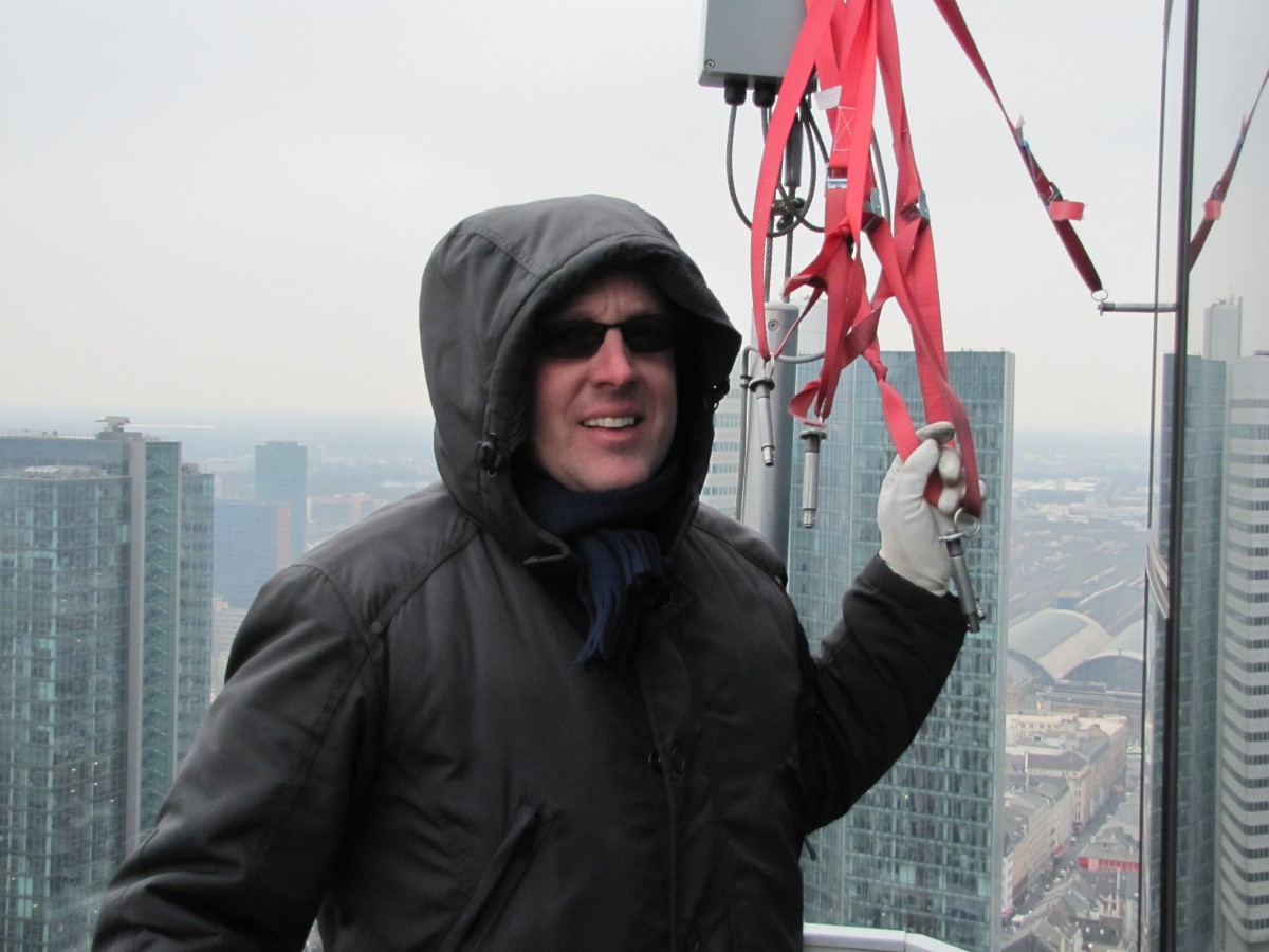 Die obige Bildaufnahme zeigt einen winterlichen Hochhauseinsatz in rund 200 m Höhe. Derlei hochkomplexe Leistungen werden auf Grundlage eines vertrauensvollen Zusammenwirkens mit den Auftraggebern und sonstigen Beteiligten erbracht.